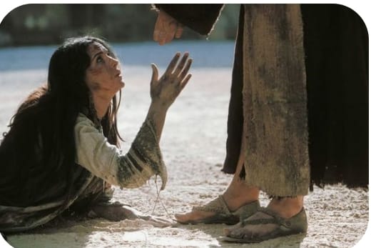 Y quedó sólo Jesús, con la mujer, en medio, que seguía allí delante. Jesús se incorporó y le preguntó: "Mujer, ¿dónde están tus acusadores?; ¿ninguno te ha condenado?" Ella contestó: "Ninguno, Señor."